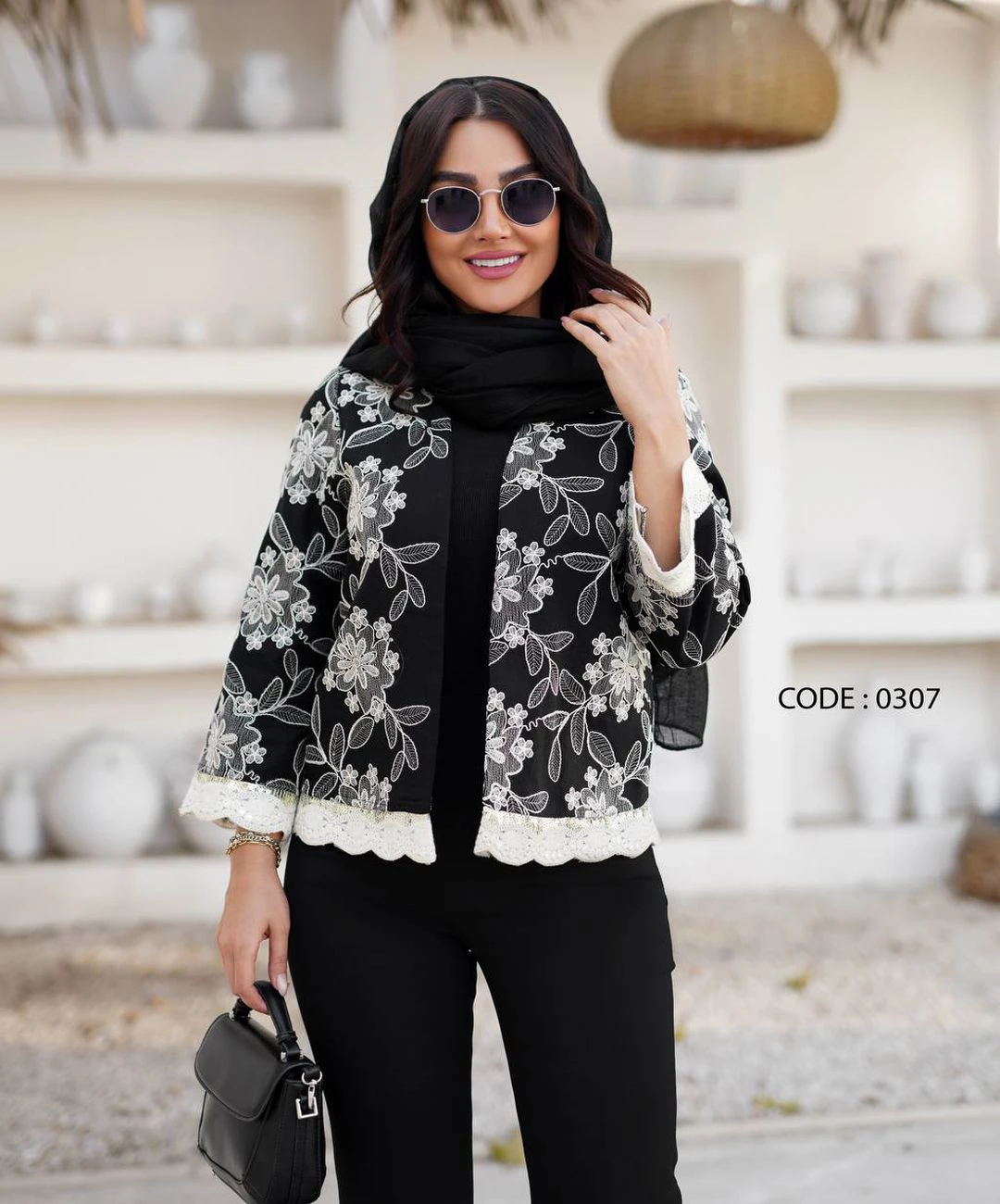رنگبندی: دو رنگ مشکی و سورمه ای تیره با گلدوزی کرم/بژ